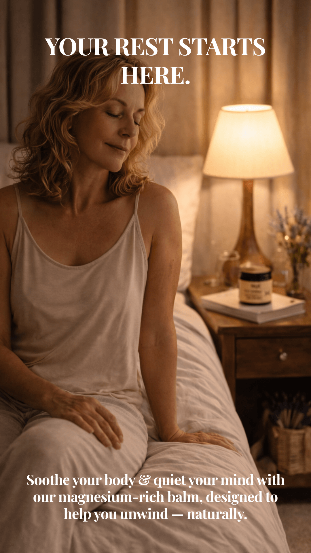 Our Magnesium Sleep Butter blends magnesium, nourishing butters, and calming botanicals to relax the body, quiet the mind, and soften the skin.